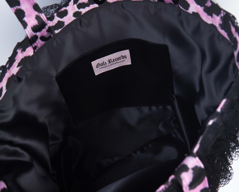 풍성한 5단 레이스와 두 개의 1단 레이스, 빛을 받으면 은은한 광택감이 도는 레오파드 원단의 조화가 매력적인 아이템입니다. 유니크한 색감의 레오파드 패턴과 GalzRecords만의 스타일리시한 BAD GAL♡ 무드가 가득 담긴 레오파드 레이스 쇼퍼백은 다양한 컨셉의 코디를 더욱 고급스럽고 빛나게 합니다.