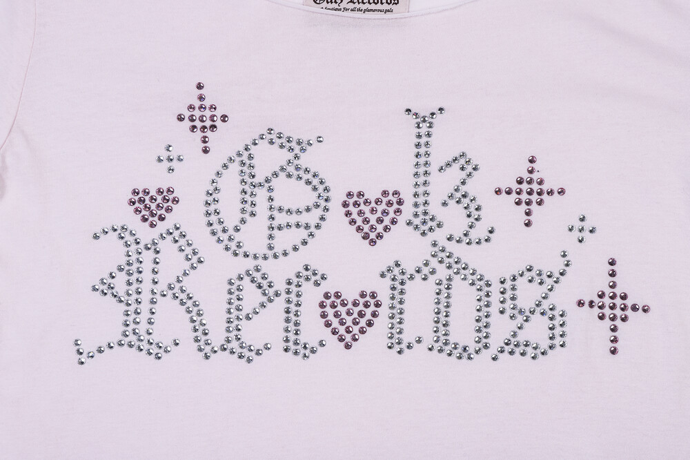 동일한 사이즈의 핑크와 화이트 빅 스톤을 믹스해 펑키한 매력이 돋보이도록 디자인된 썸머 롱 슬리브입니다. 전면을 가득 채우는 라인스톤 디자인은 로고와 함께 하트, 반짝이는 빛을 표현하여 유니크하면서도 쿨한 매력을 자아냅니다.