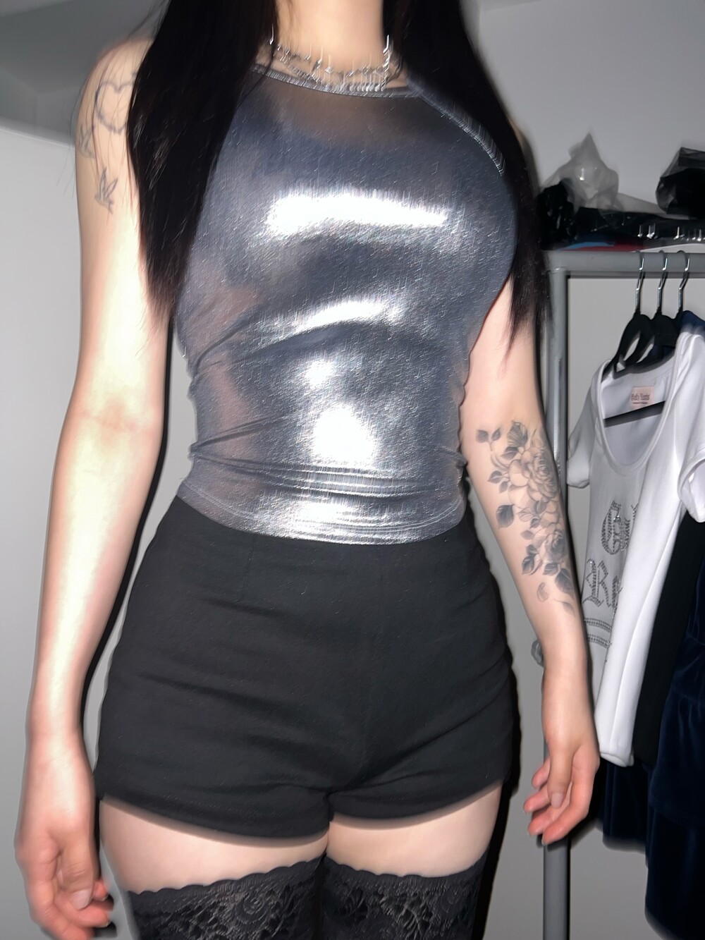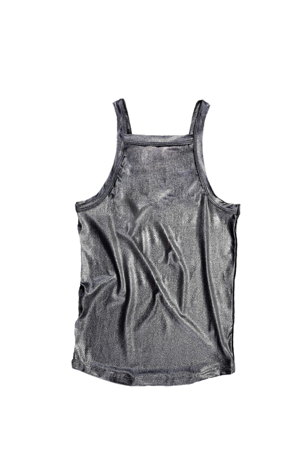 광택감이 돋보이는 메탈릭 슬리브리스 탑입니다.