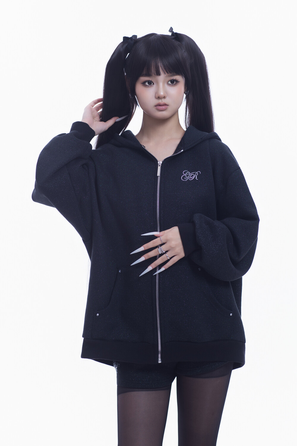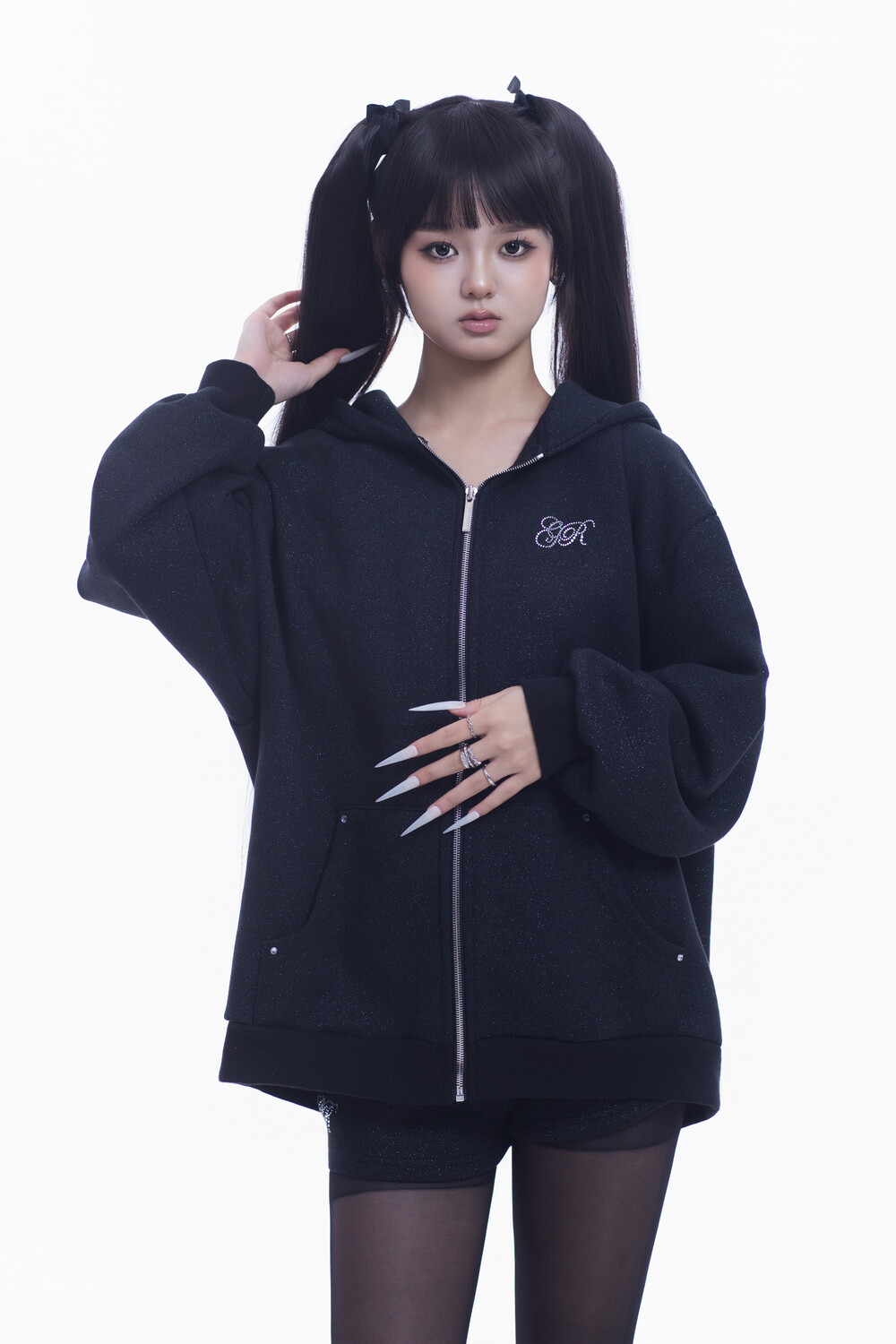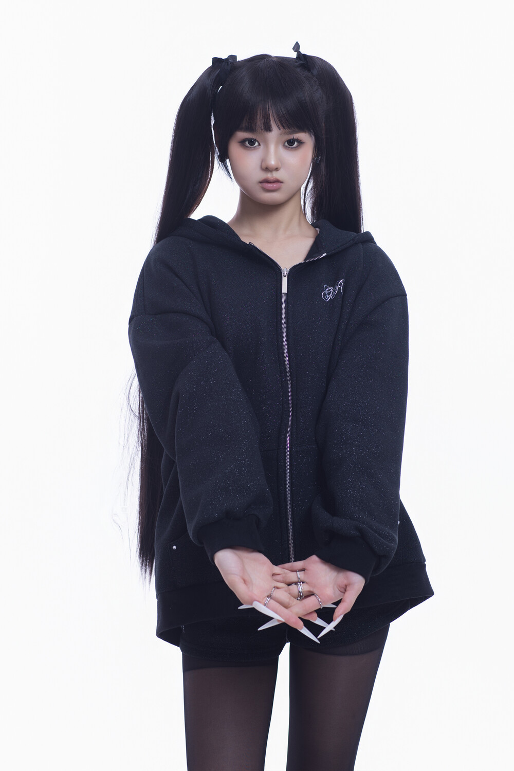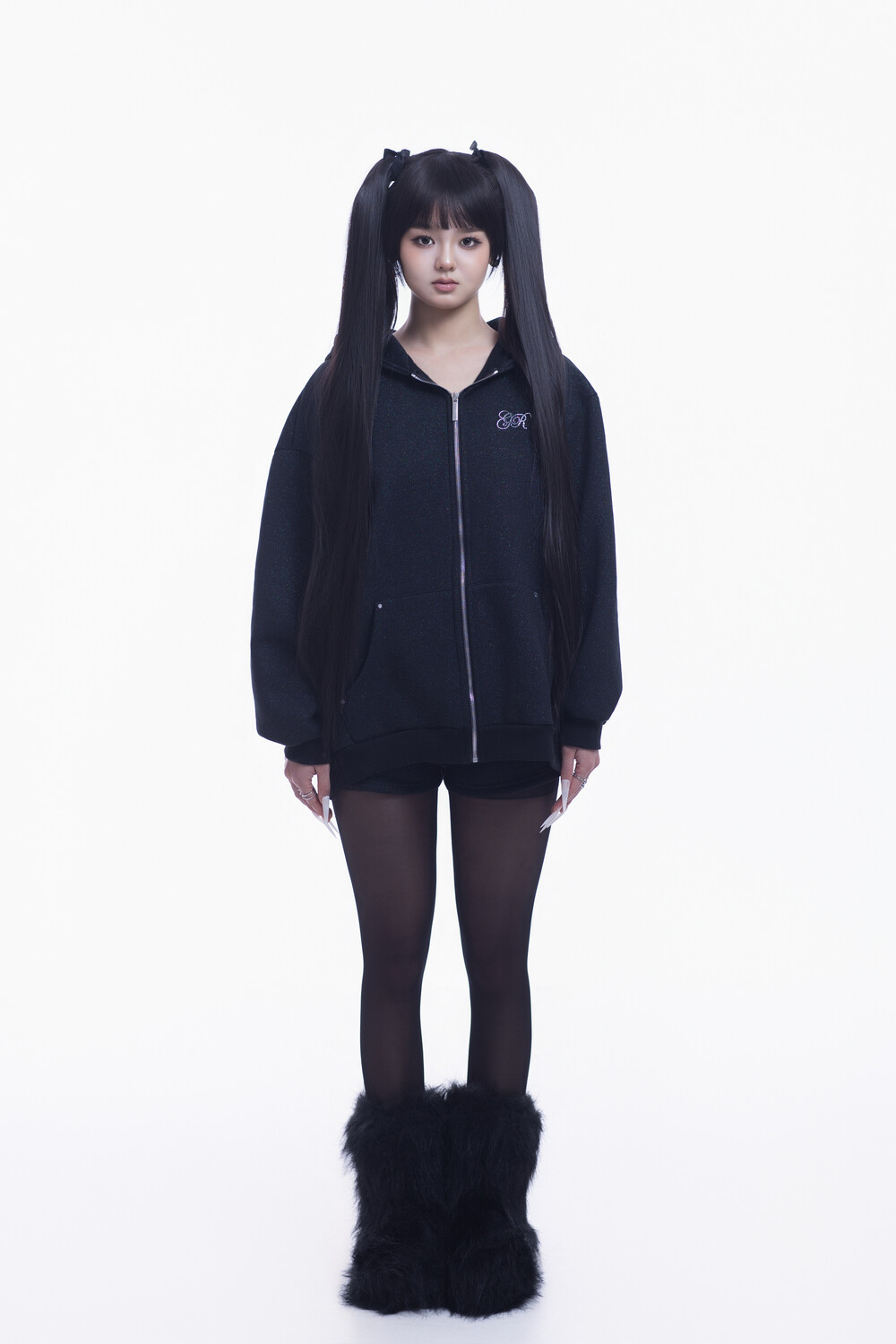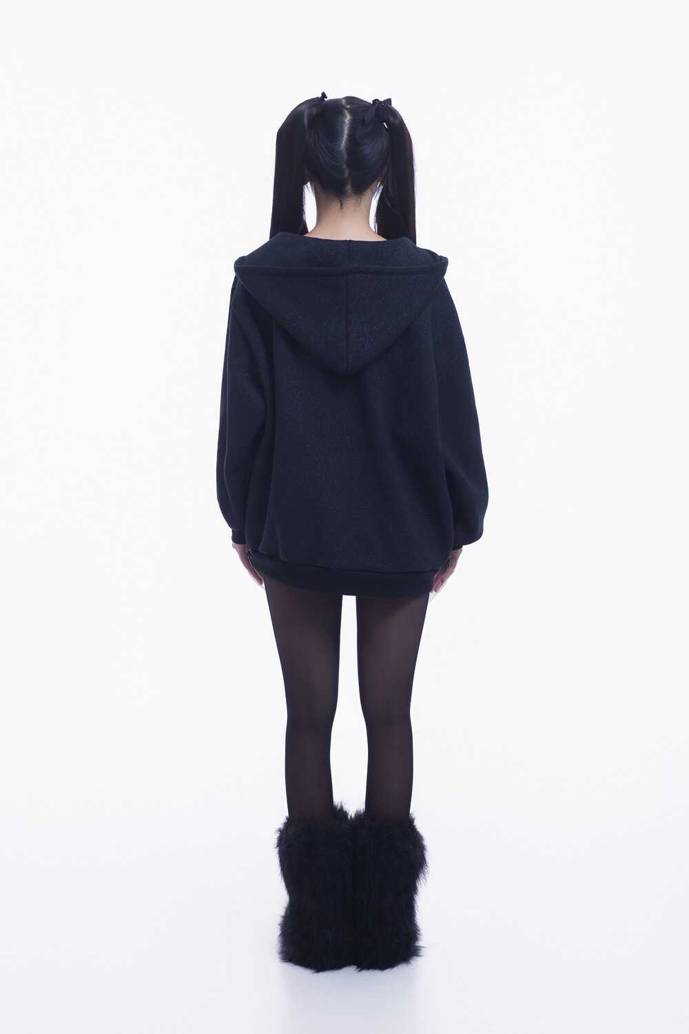 -여유있는 사이즈의 오버사이즈 글리터 후드집업