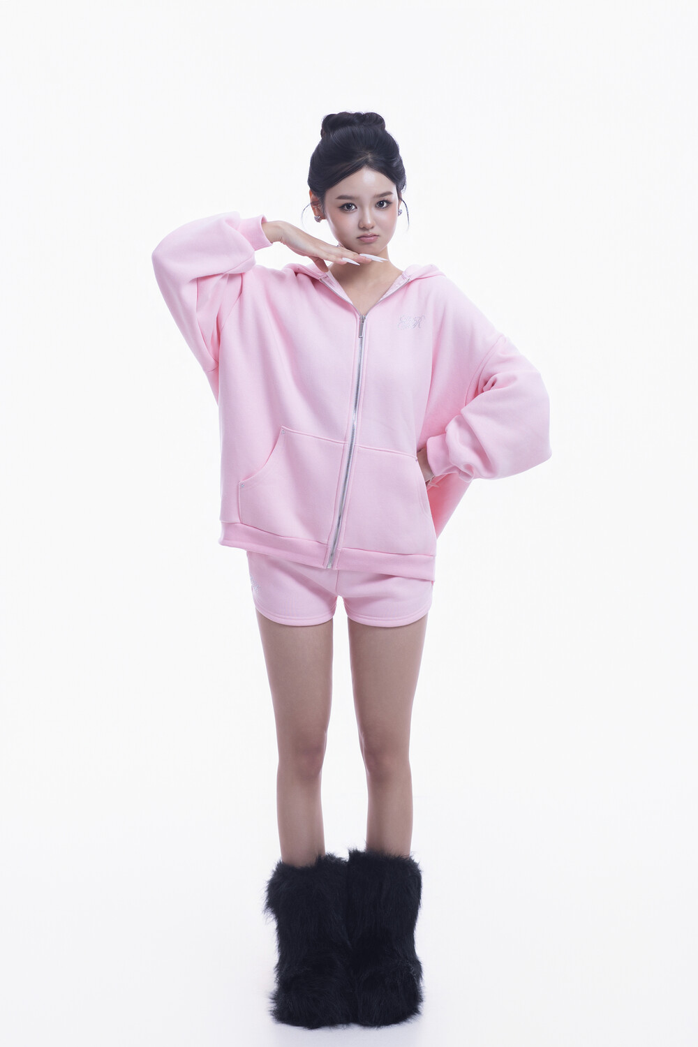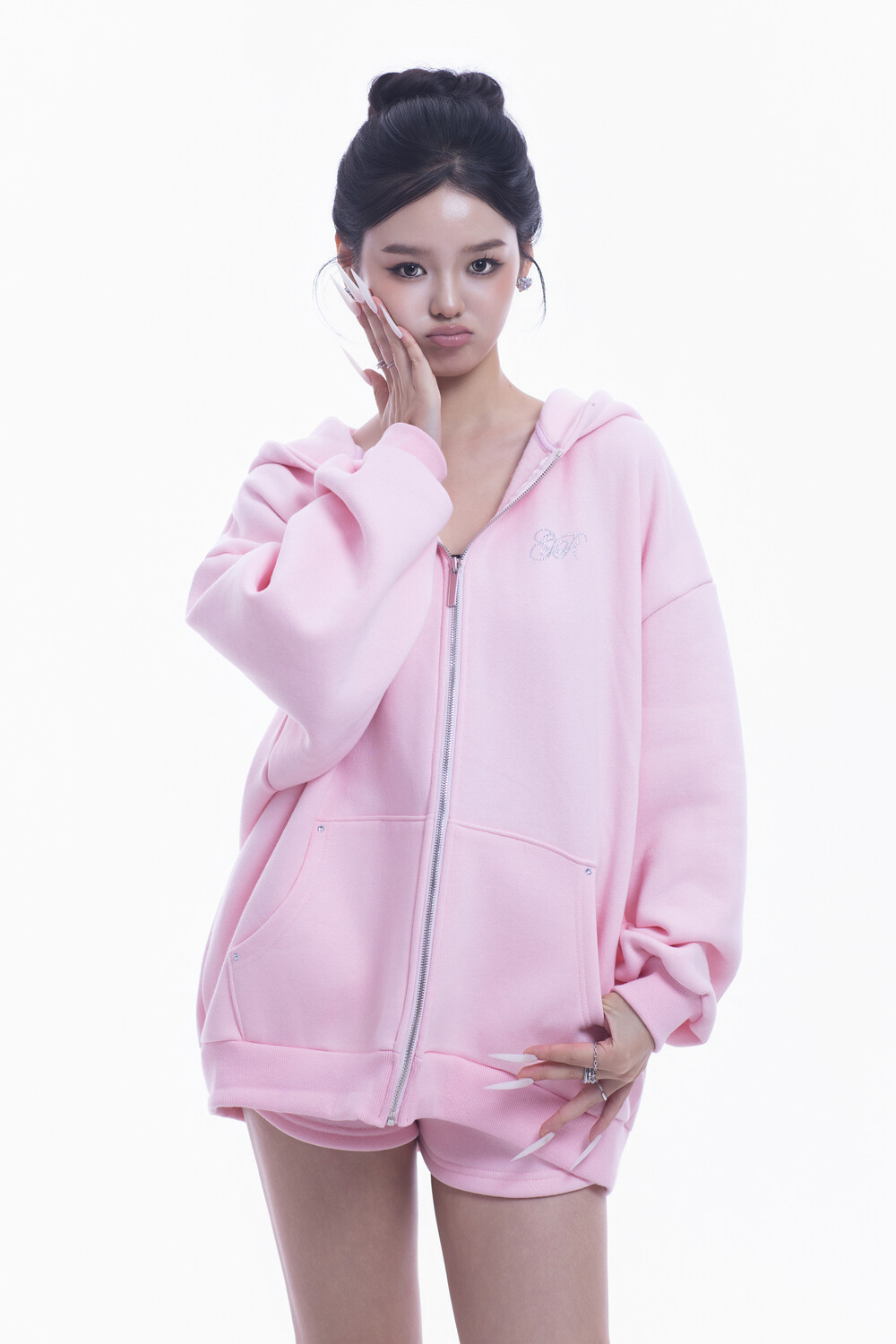 -여유있는 사이즈의 오버사이즈 글리터 후드집업