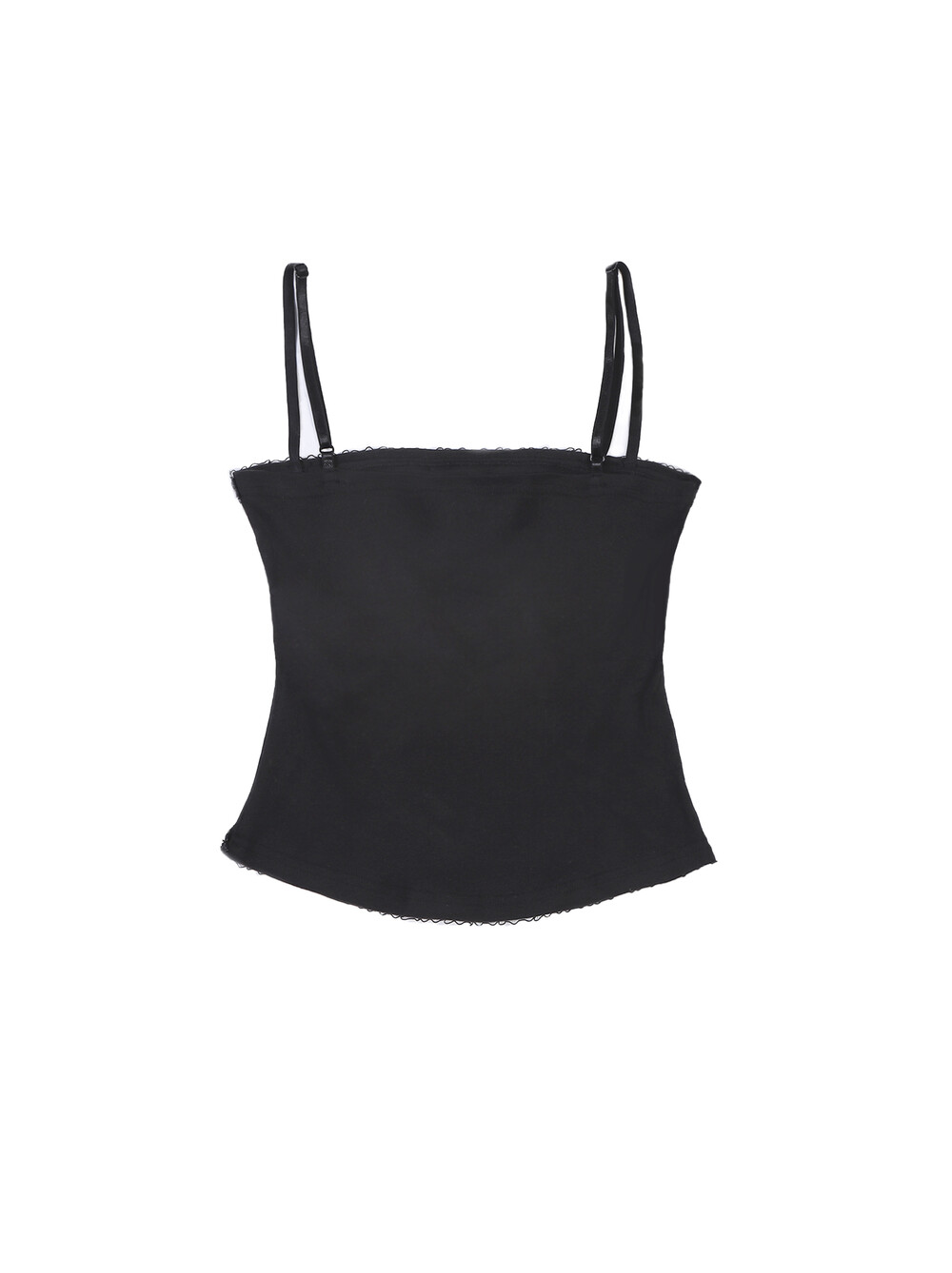 유니크한 크리스탈 스톤 레이스가 포인트인 슬리브리스 탑입니다. 부드러운 면, 모달, 스판 혼방 원단이 편안하면서도 크리스탈 스톤 레이스, 중앙의 리본이 포인트가 되어 GalzRecords만의 데일리- 드레시 무드를 즐길 수 있는 아이템입니다. 끈은 길이 조절이 가능한 스트랩으로 되어있어 체형에 따라 조절하실 수 있습니다.