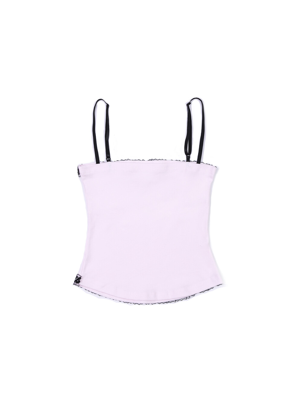 유니크한 크리스탈 스톤 레이스가 포인트인 슬리브리스 탑입니다. 부드러운 면, 모달, 스판 혼방 원단이 편안하면서도 크리스탈 스톤 레이스, 중앙의 리본이 포인트가 되어 GalzRecords만의 데일리- 드레시 무드를 즐길 수 있는 아이템입니다. 끈은 길이 조절이 가능한 스트랩으로 되어있어 체형에 따라 조절하실 수 있습니다.