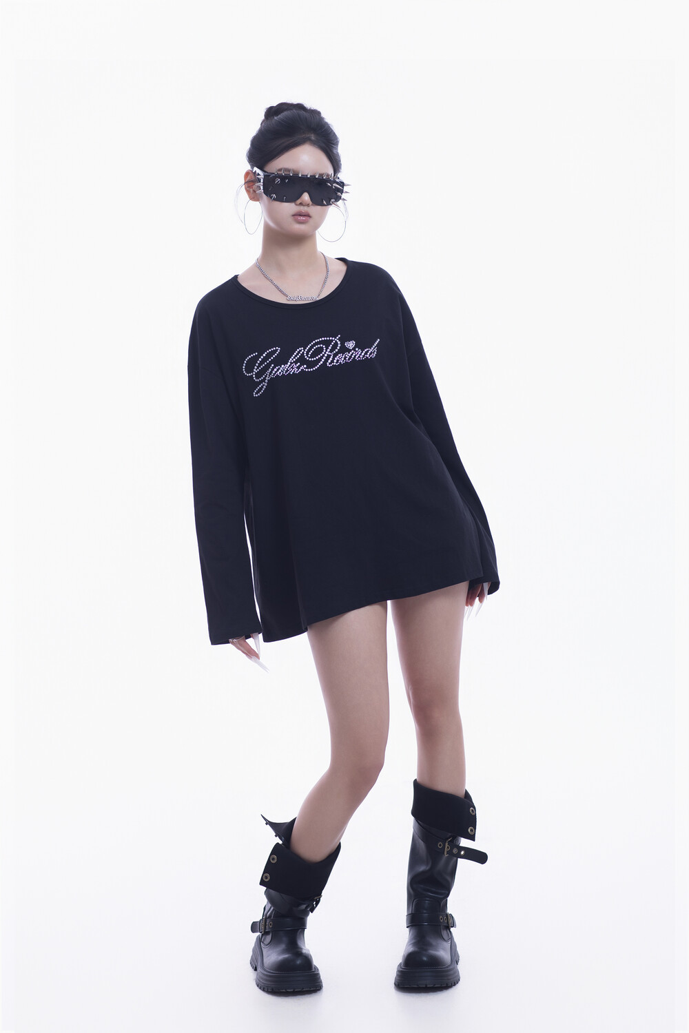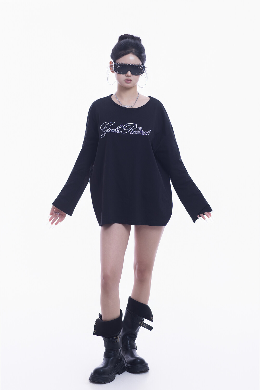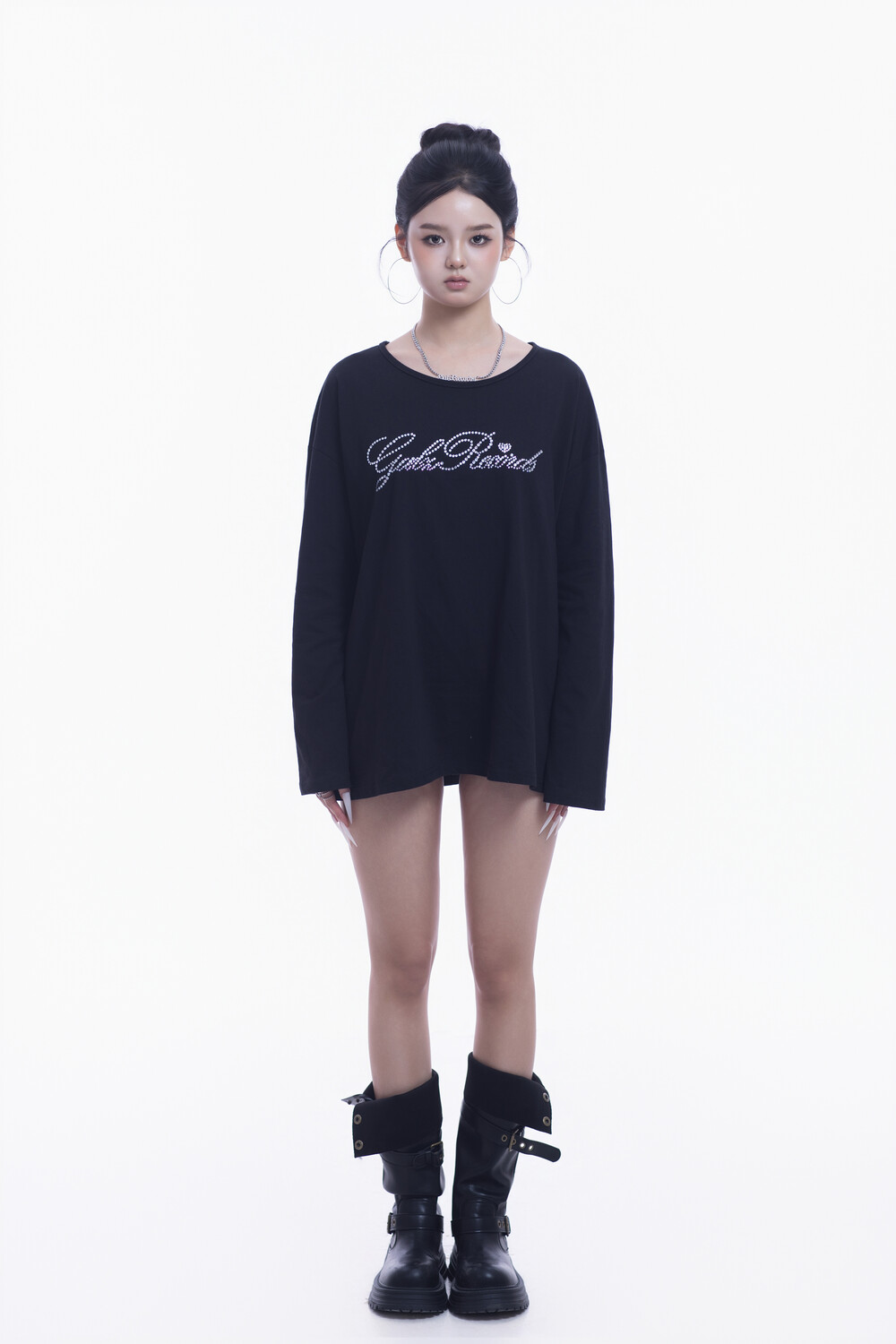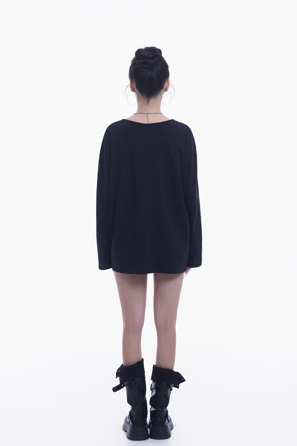 -여유있는 소매 기장, 넥 라인의 오버 사이즈 롱 슬리브